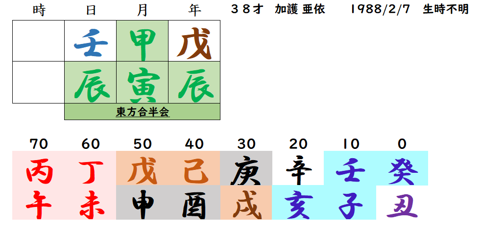 元モーニング娘(ミニモニ。)の加護亜依さんの命式を例にとって、推命学の未来予測法について考察してみましょう。